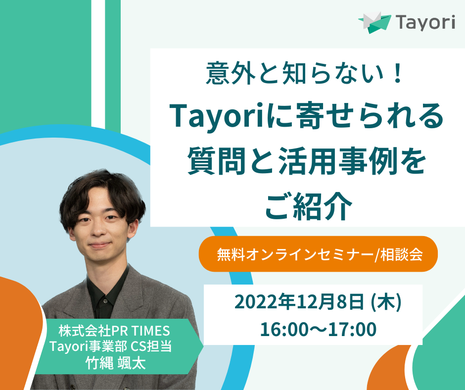 Tayoriのサポート部門によくいただくご質問のご紹介をするセミナーと、皆様からいただいたご質問にお答えする相談会の2段構成のイベントとなっております。