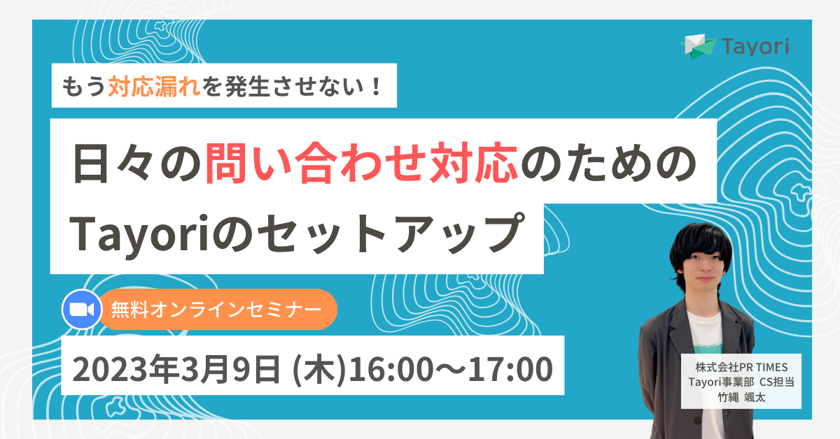 本セミナーでは、実際にTayoriを活用した顧客対応フローについてや、