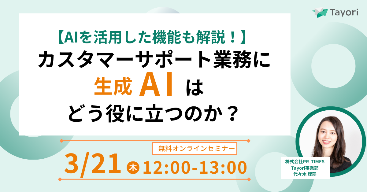 すでにTayoriをご利用の方だけではなく、まだご利用で無い方、生成AIをカスタマーサポート業務に取り入れたい方もぜひご覧いただけますと幸いです。