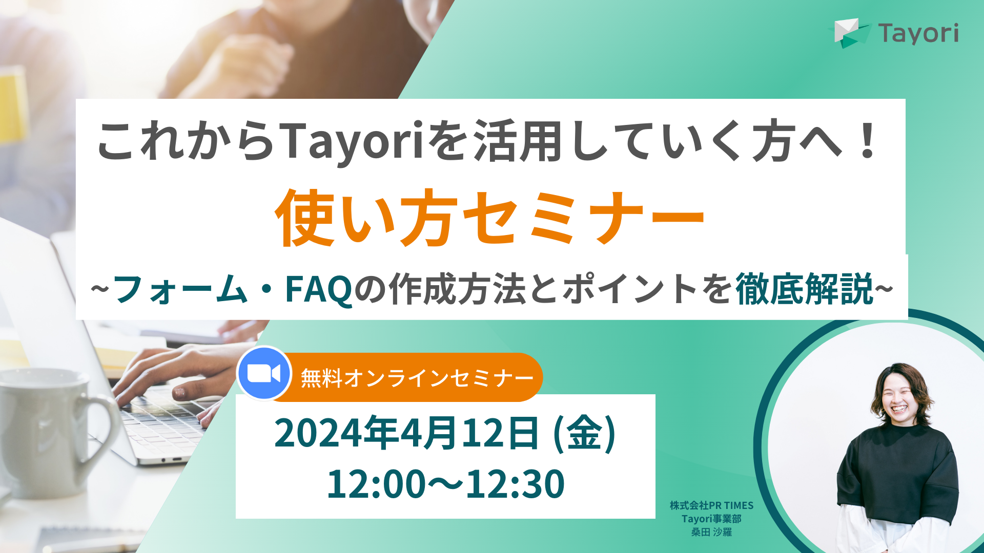 そんな、Tayoriに登録したばかりの方、使い始めたばかりの方におすすめのセミナーです。