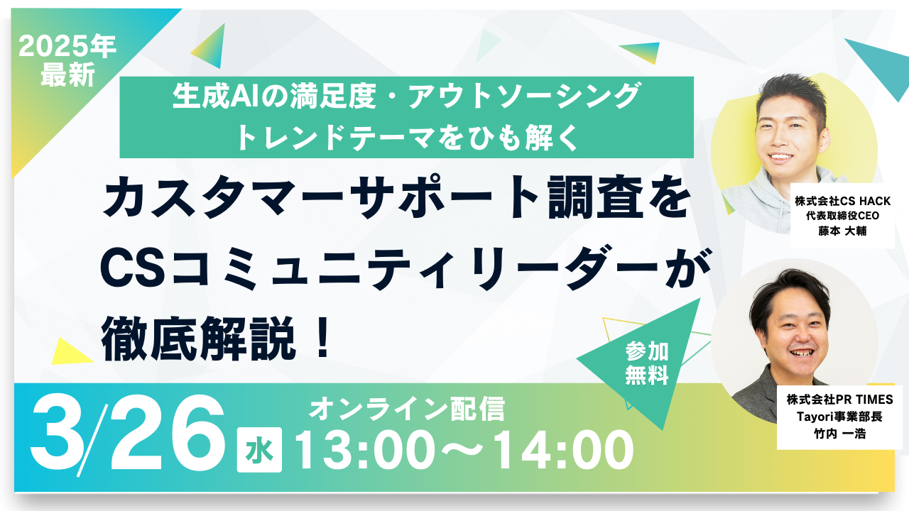本セミナーでは、カスタマーサポートツール「Tayori」が発表した「カスタマーサポート白書2025」について、調査の協力会社である株式会社CS HACK代表取締役CEO藤本大輔氏に本調査を徹底解説いただきます。