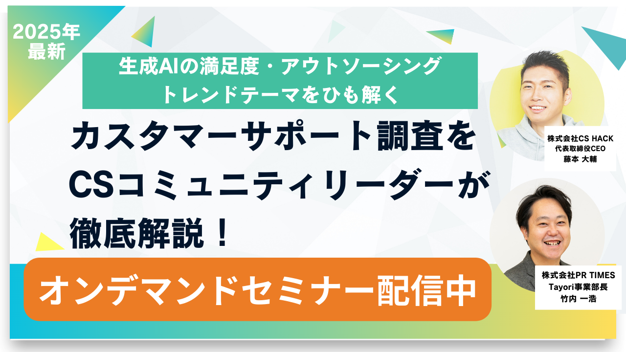 本セミナーでは、カスタマーサポートツール「Tayori」が発表した「カスタマーサポート白書2025」について、調査の協力会社である株式会社CS HACK代表取締役CEO藤本大輔氏に本調査を徹底解説いただきます。