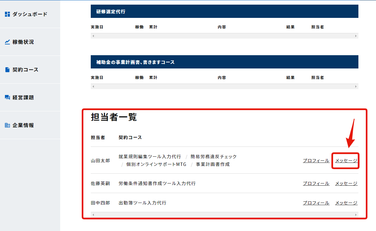 ・担当者一覧からワーカーを確認してメッセージを送信することもできます