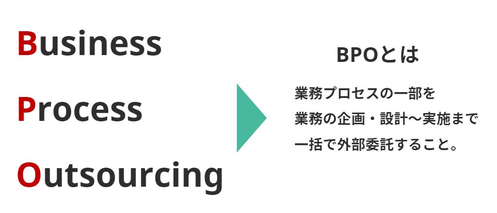 単なる外部委託とは異なり、その前後のを含めた【プロセス全て】をアウトソーシングできる点が特徴です。