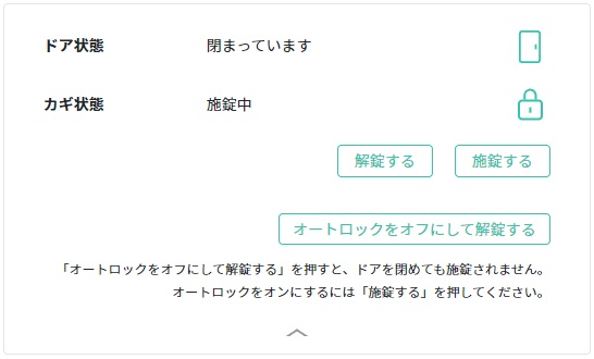 メンバーサイトからドアのカギを開けたり閉めたりすることができます。