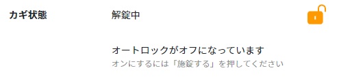 操作すると”オートロックがオフになっています”と表示されます。