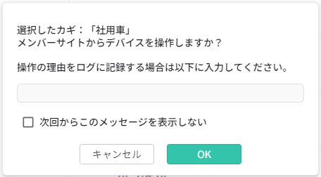 「次回からこのメッセージを表示しない」にチェックしてOKを選択場合、次回以降のデバイス操作で確認画面を表示しません。