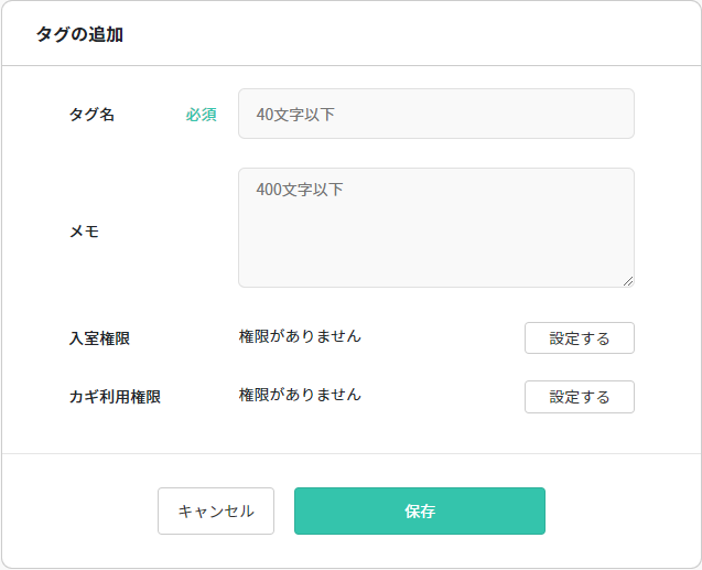 「タグの追加」を選択すると、「タグの追加」画面が表示されます。