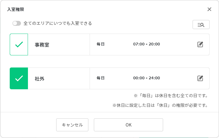 設定方法は「入室権限を登録する」を参照ください。