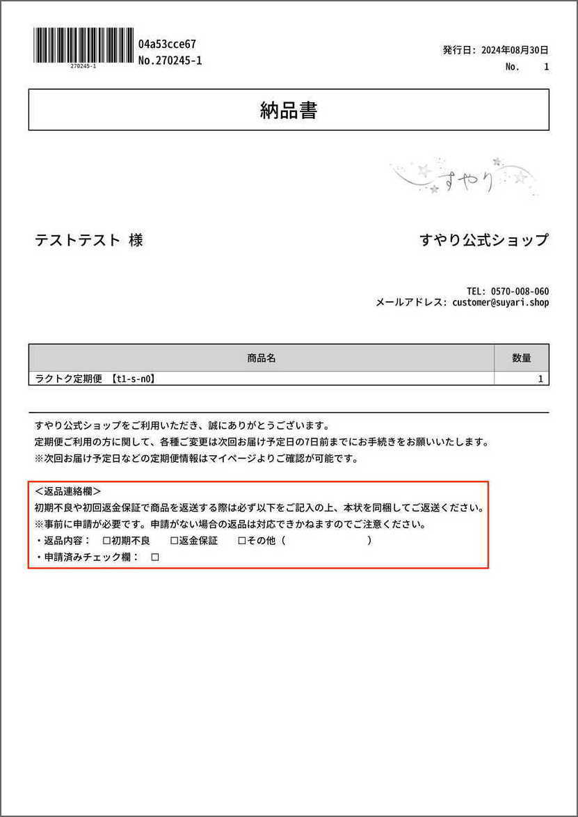 ・納品書(納品書下部の返品連絡欄部分を必ずご記載ください)
