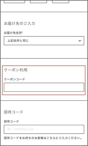 2.ご注文内容入力画面に進んだら、「クーポン利用」の欄にクーポンコードを入力します。