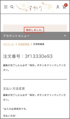 3.「保存しました」と表示され、「次回配送予定日」が変更されていれば完了です。