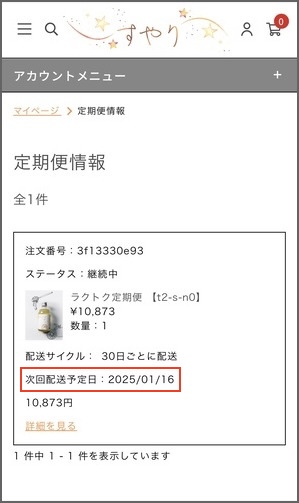 1.マイページログイン後、お手続きしたい定期便の「詳細を見る」を選択します。