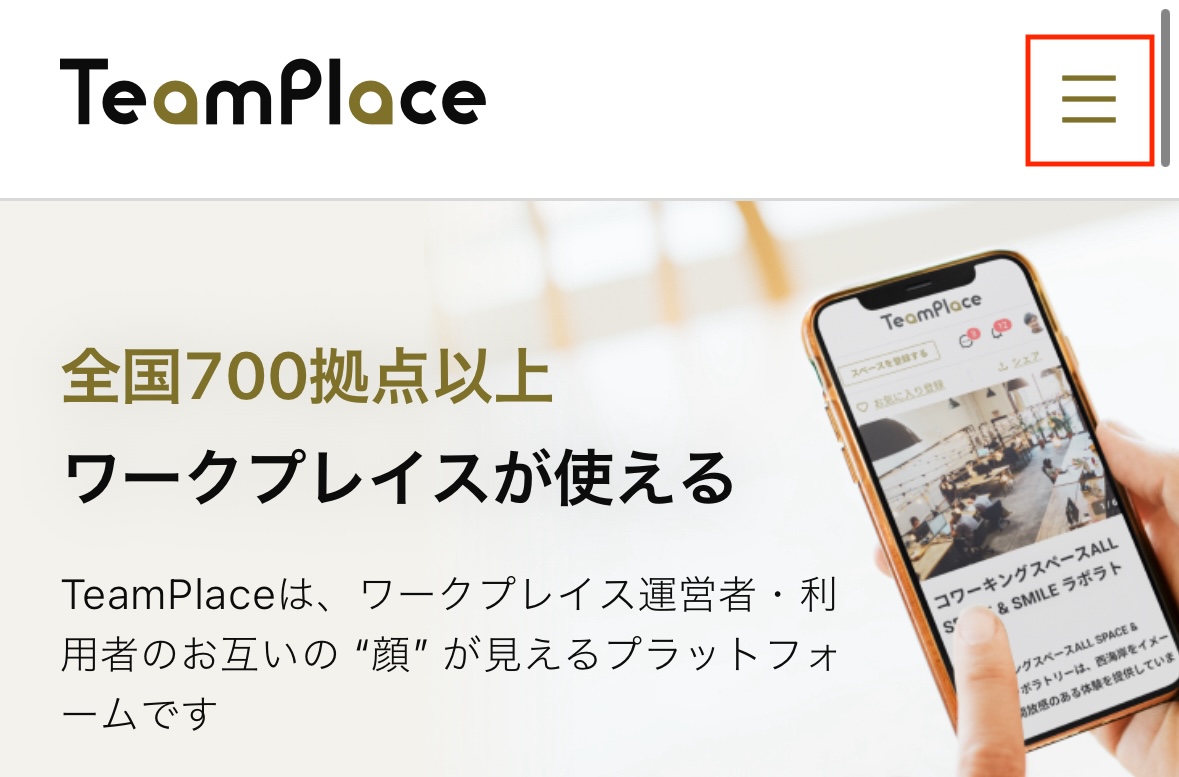 2.画面右上のハンバーガーボタンをクリックし、メニューバーを表示