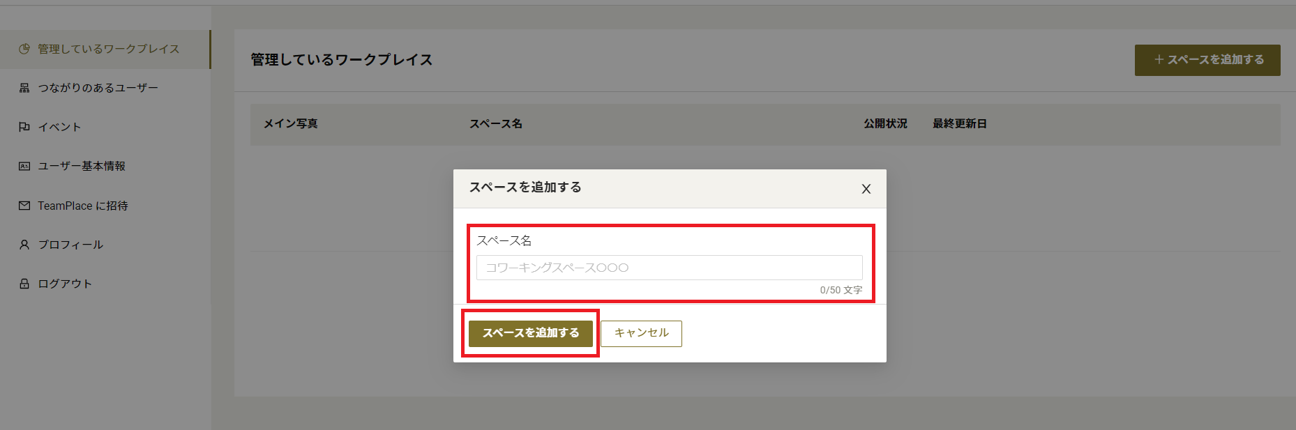 2.スペースの登録