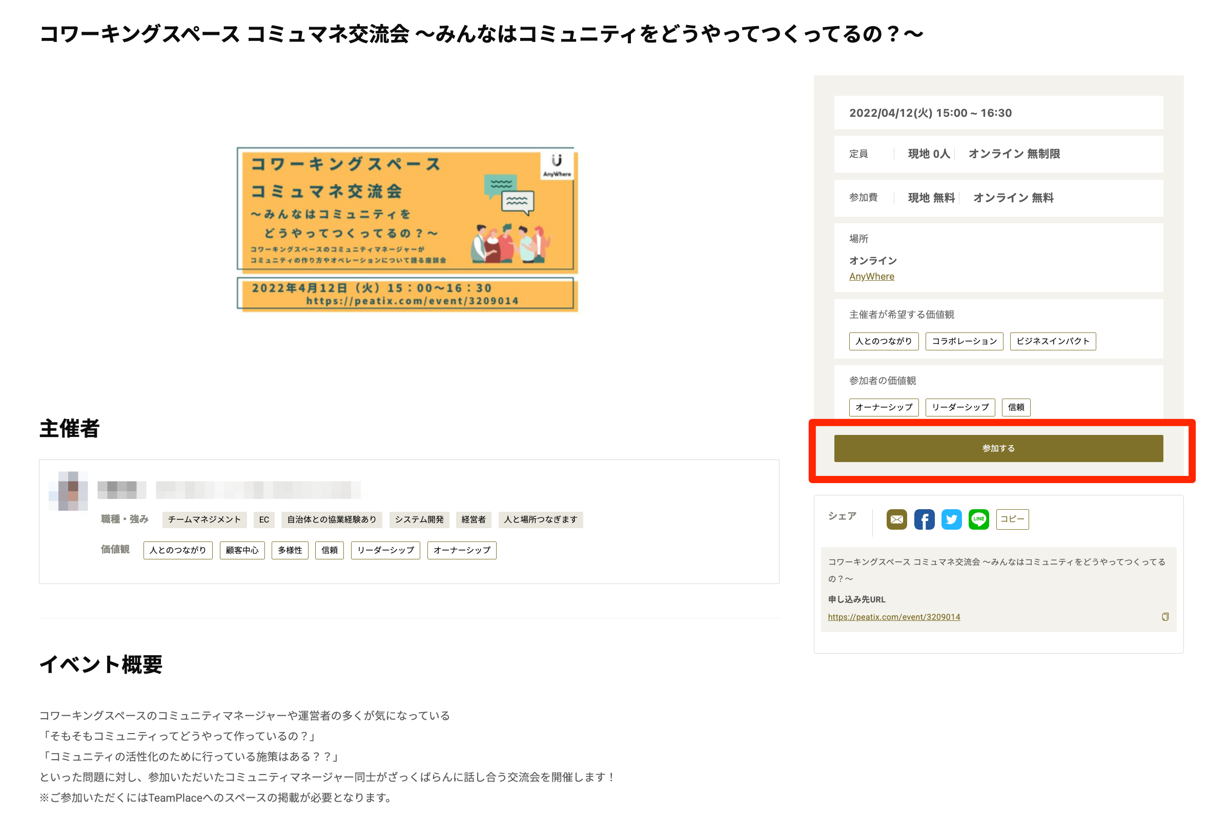 4.イベントページの「参加する」をクリック