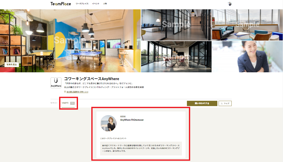 つながり申請が承認され、ワークプレイスとつながると、ワークプレイスのページ上につながりのあるユーザーとして表示され、ワークプレイスに関連する人が可視化される仕組みとなっています。