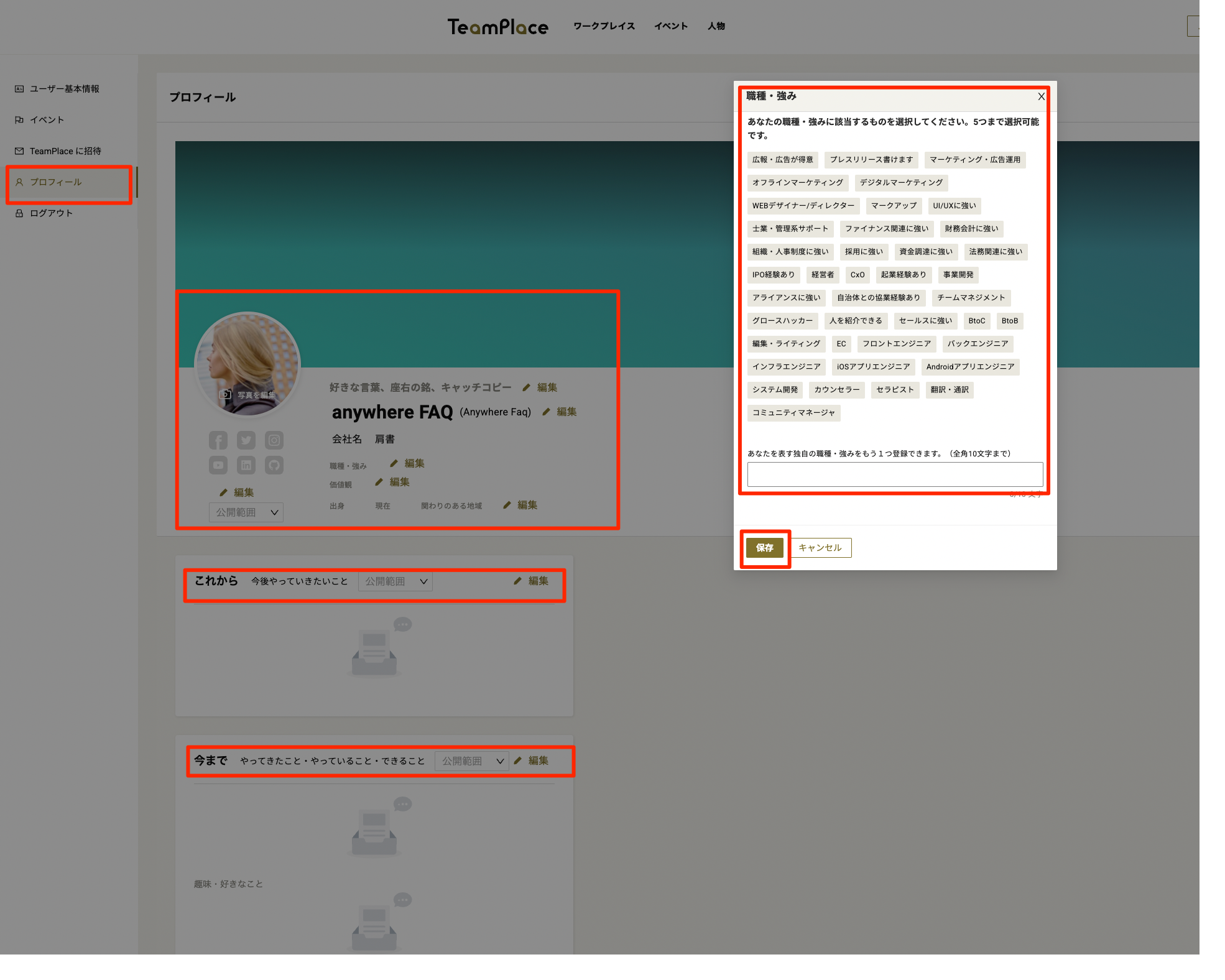 これからやりたいこと、今までやってきたことなどをテキストで入力いただけます。