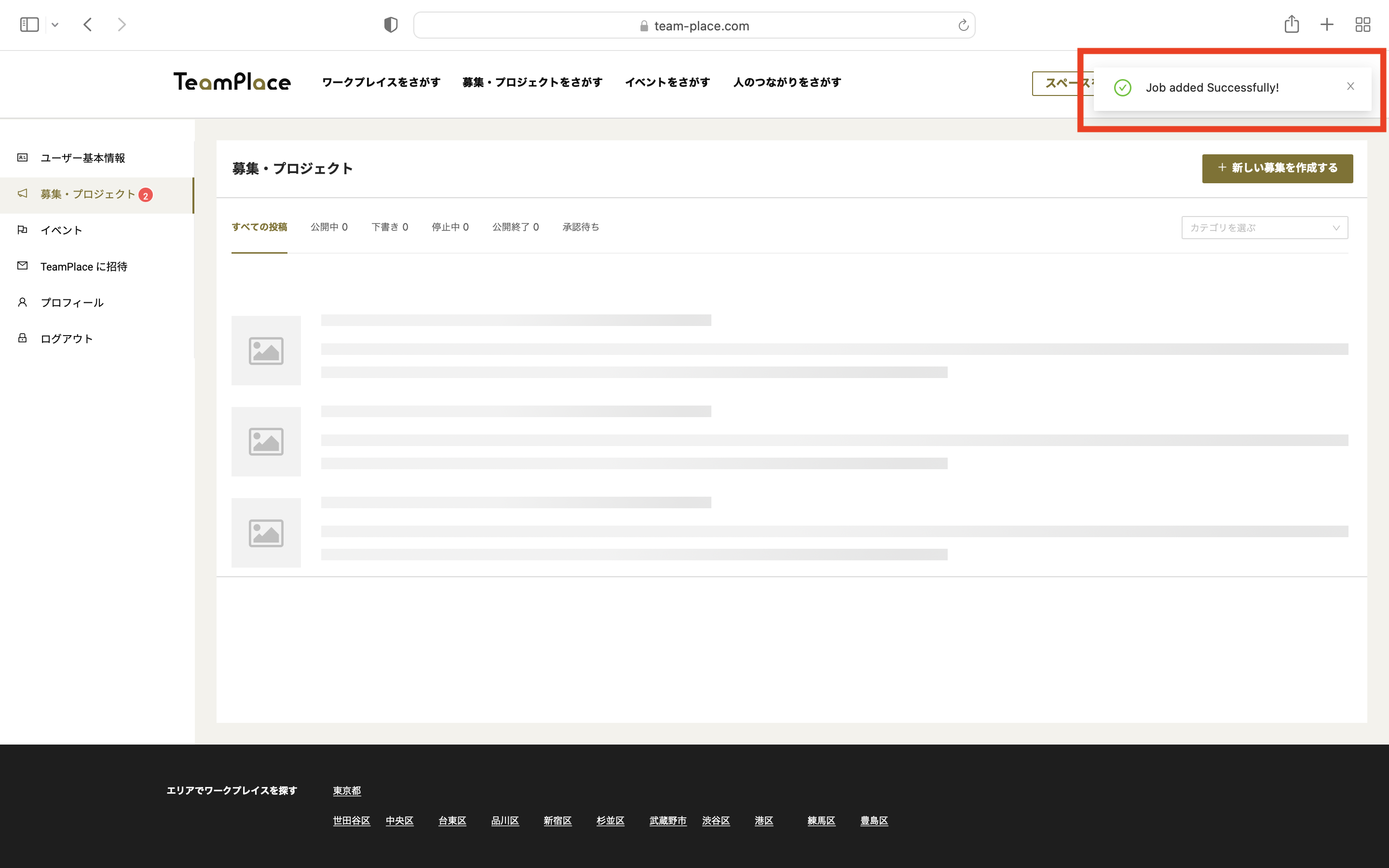 2.「Job added Successfuly!」のポップアップが表示され、申請は完了です。