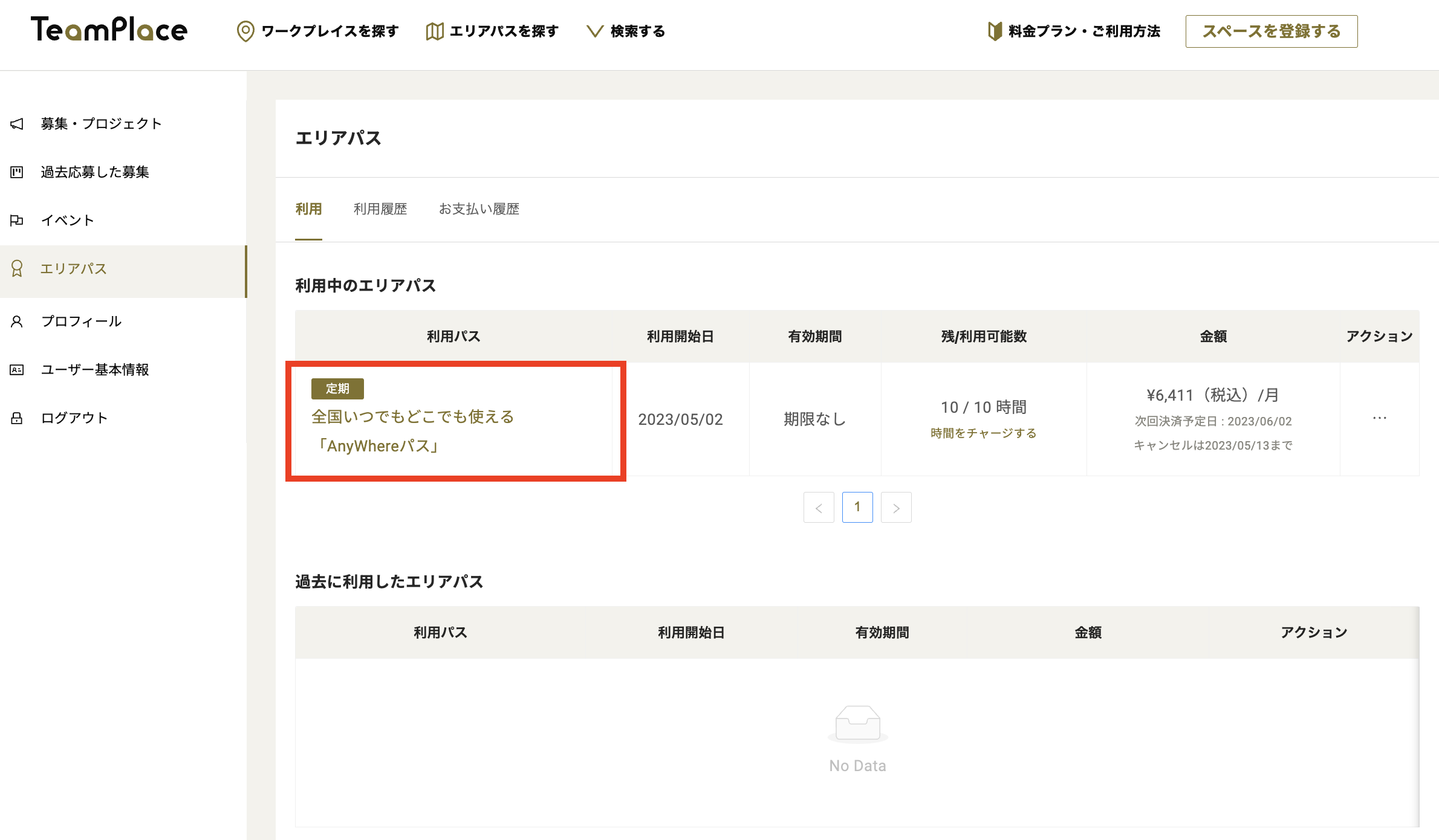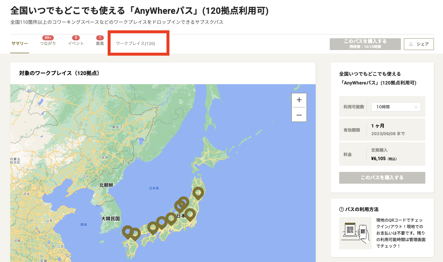 購入したTeamPlaceパスが使えるワークプレイスの確認方法をご説明します