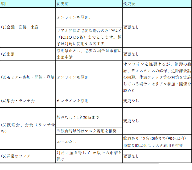 対面コミュニケーションを大切にしていますが、引き続き社内外での感染を防ぐため、下記の通りといたします。