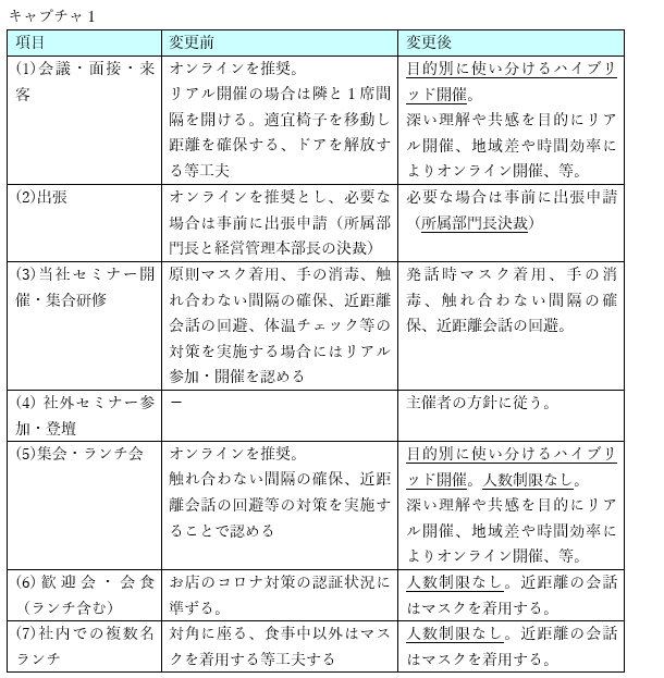 基本的な感染対策をしつつ、対面とWEBのそれぞれの良さを生かすため、下記キャプチャ1の通りといたします。