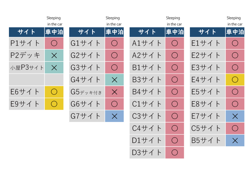 バンコン/ルーフトップ/カーサイド/軽キャンピングカーは車中泊OKのサイトでご予約いただければOKです。