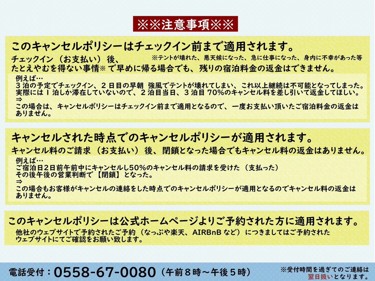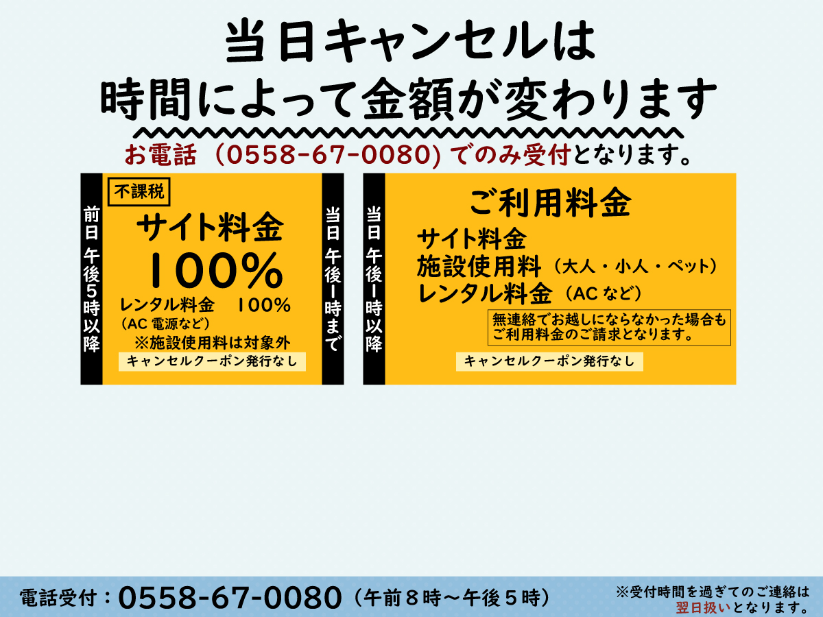 キャンセル料について(コテージ)